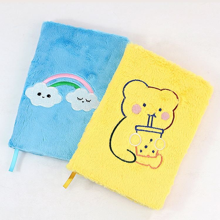 Logotipo personalizado de la fábrica de Wenzhou bordado A5 lindo cuaderno esponjoso embalado con 1PC/OPP, 25 piezas por cartón pequeño, dos cartones pequeños embalados en 1 cartón grande de exportación.
