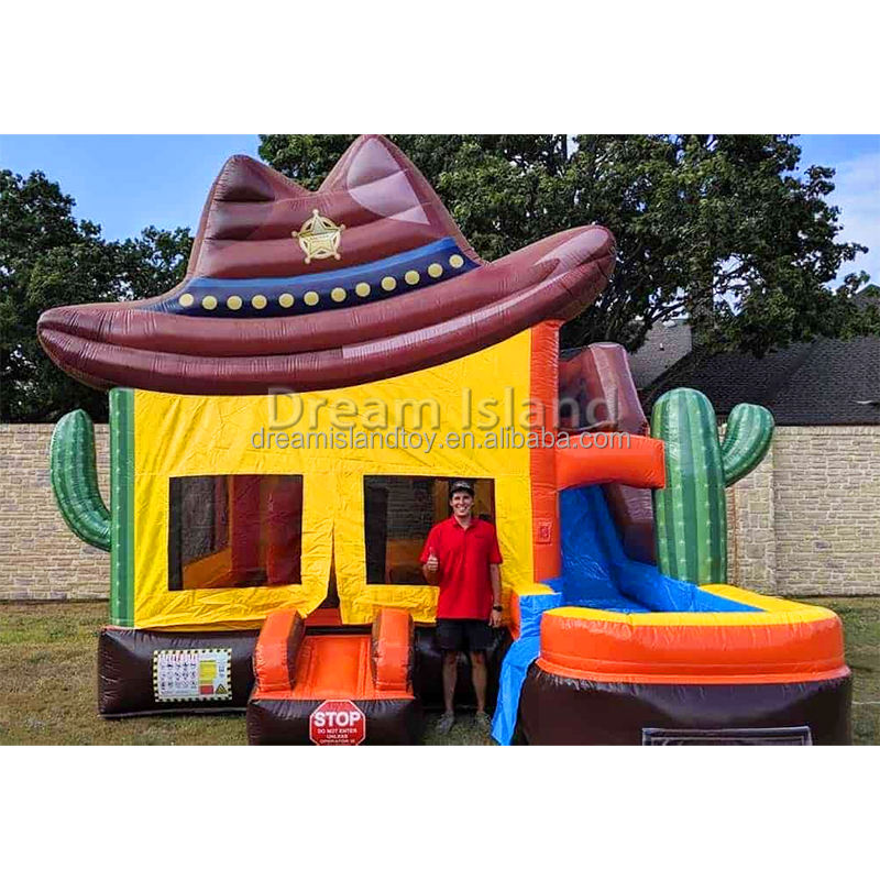 Castillo Inflable de PVC para Niños con Tobogán, Casa de Brinco Comercial con Soplador para Fiestas, Estilo Vaquero del Oeste