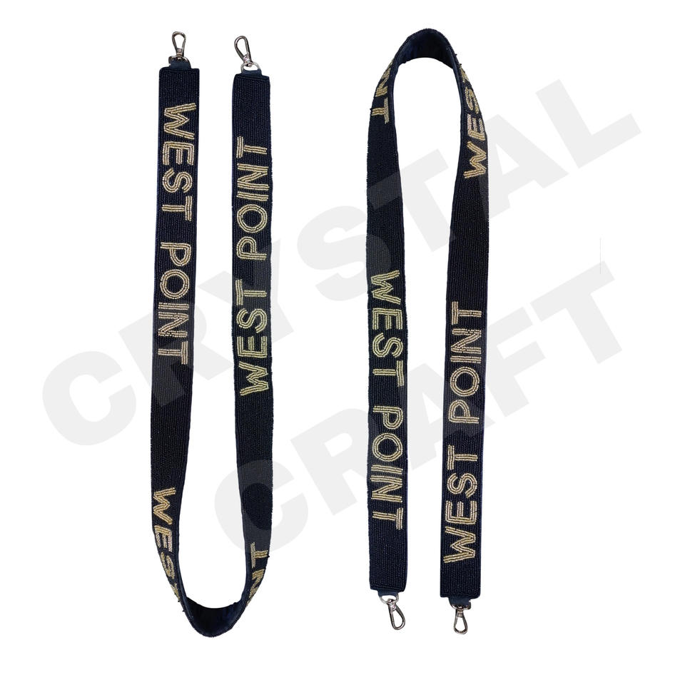 Correa de monedero con cuentas de West Point, correas de bolsa de cuentas de semilla de oro blanco personalizadas, correa de cuentas personalizada para bolsos