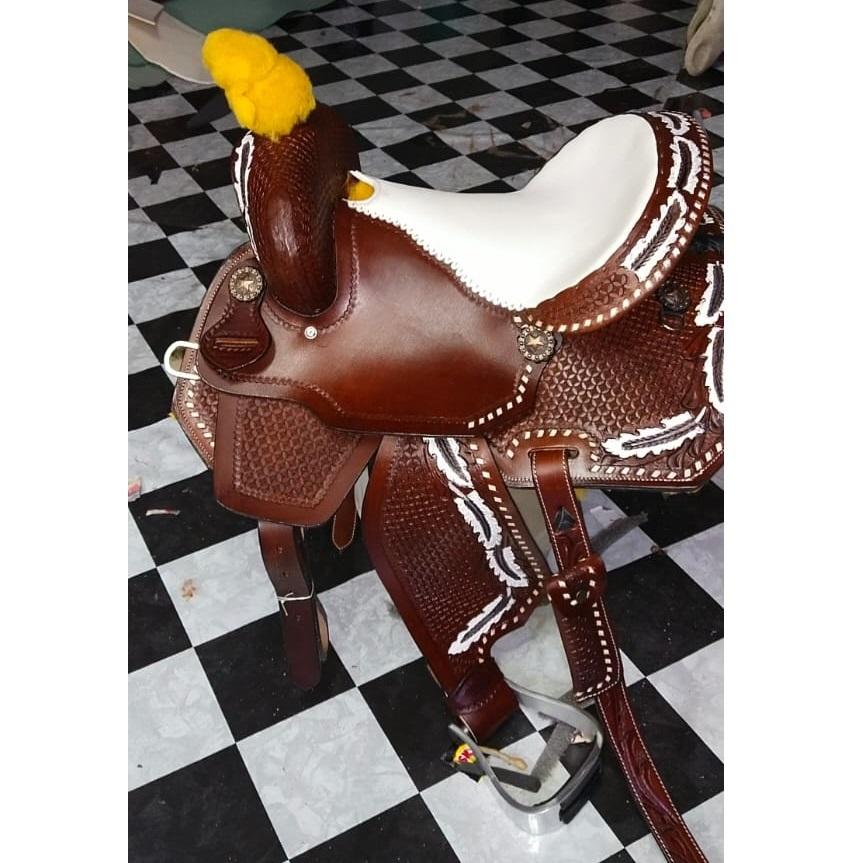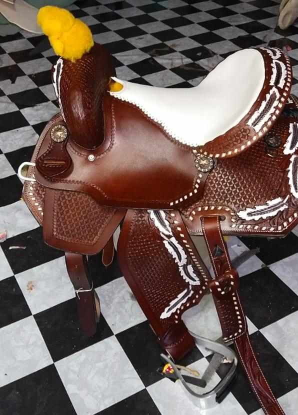 Occidental Cómodo Barril Racing Pleasure Trail Caballo Cuero Sillín Tamaño y Color Personalizado