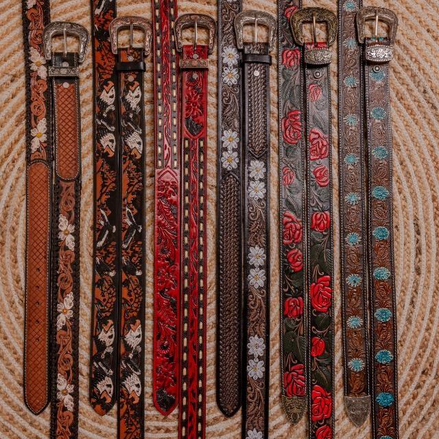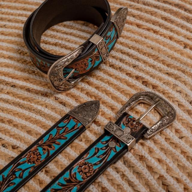 Cinturón Vaquero Occidental con Diseño Floral Repujado y Cuero de la Mejor Calidad, Fabricante Mayorista para Hombre y Mujer