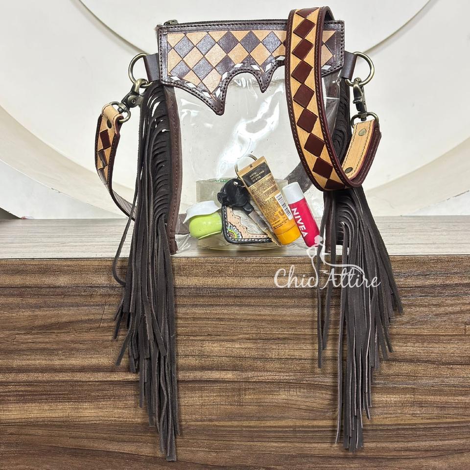 Product name:Handcrafted Clear Stadium Fringe Crossbody Bags
