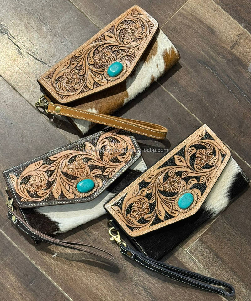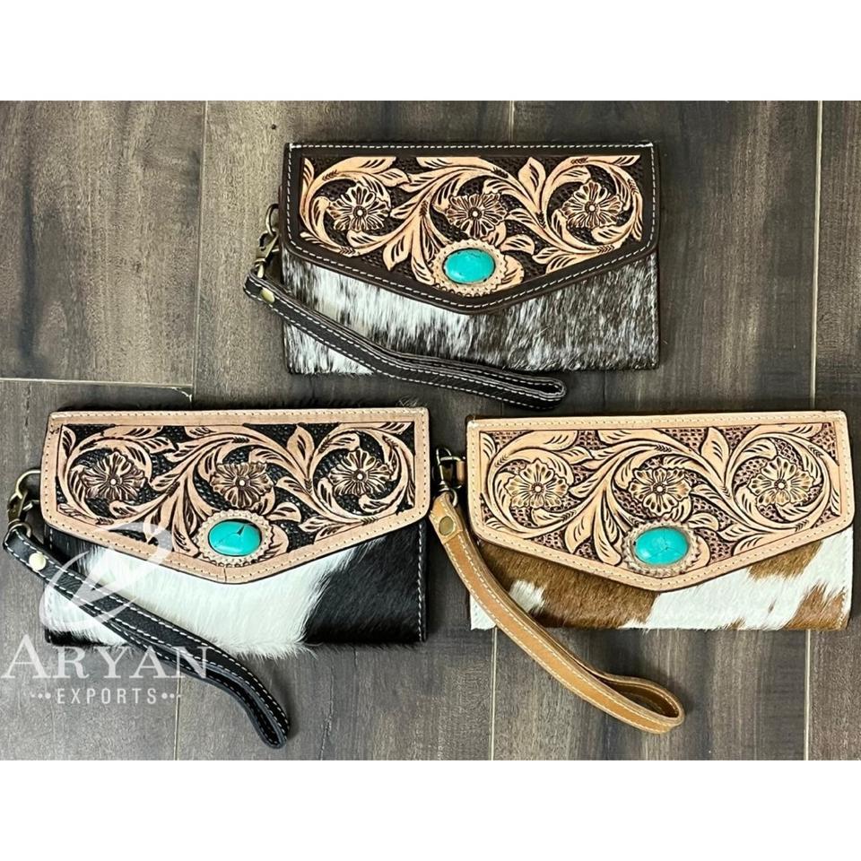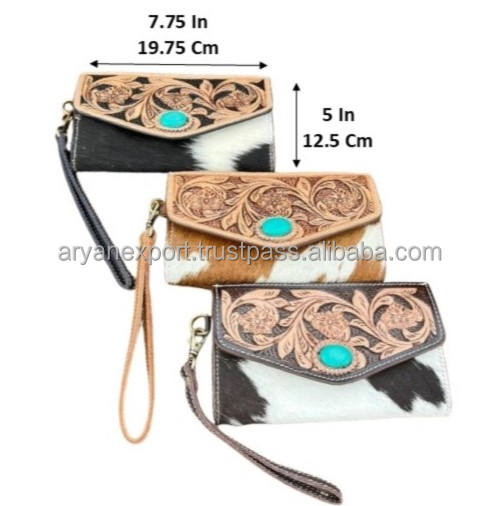 Product Name:Hand Tooled Cowhide Leather Wristlet Clutch