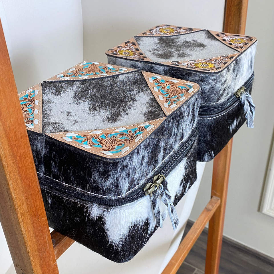 Nombre del producto:Caja de almacenamiento de joyas de cuero de vaca trabajado a mano