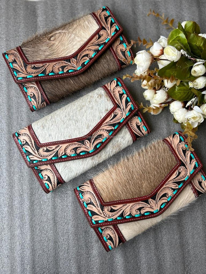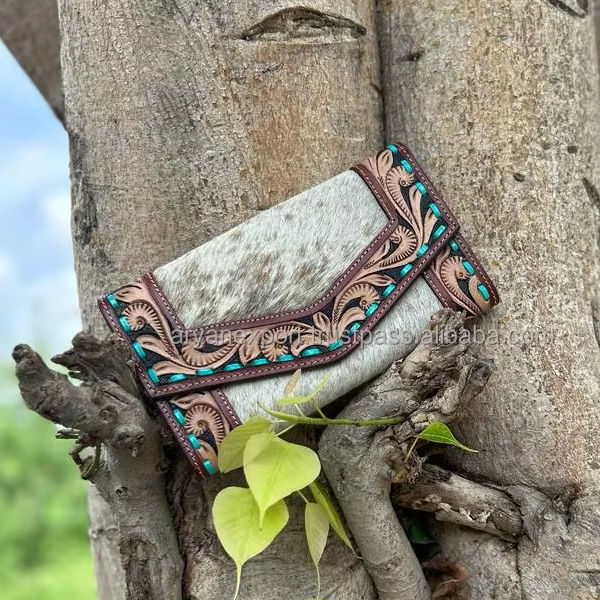 Nombre del Producto:Cartera de mujer de cuero de vaca trabajada a mano