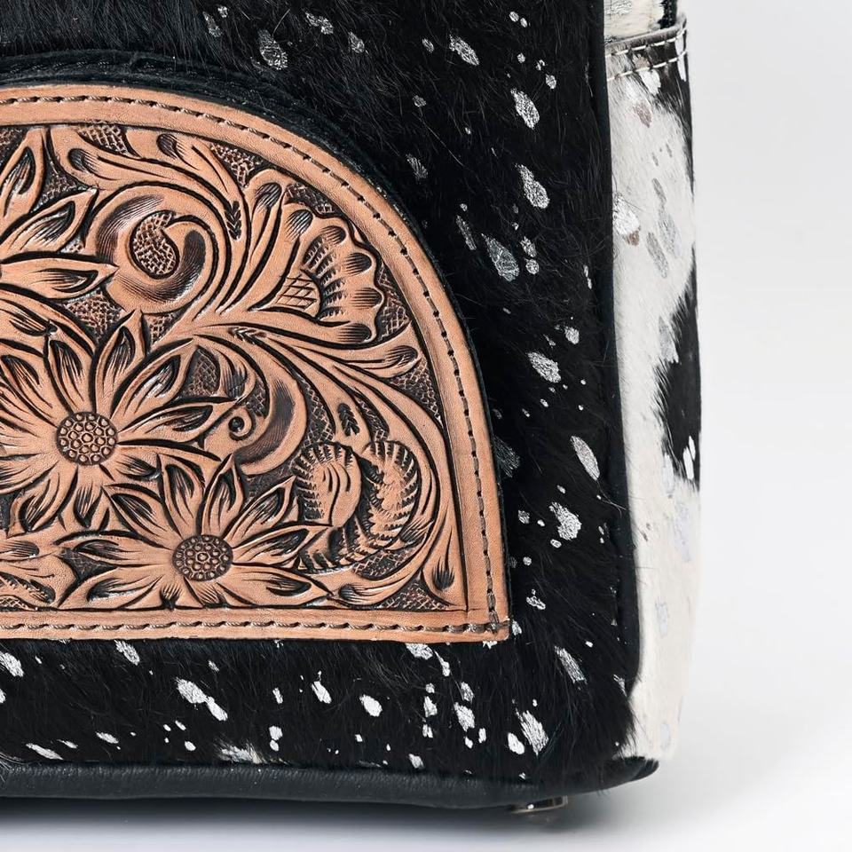 Mochila de cuero de piel de vaca con herramientas manuales occidentales Mochila de cuero tallada con estilo Mochila de cuero de estilo occidental
