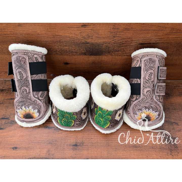 Cuero de vaca Tooled caballo inglés Botas y envolturasNombre del producto