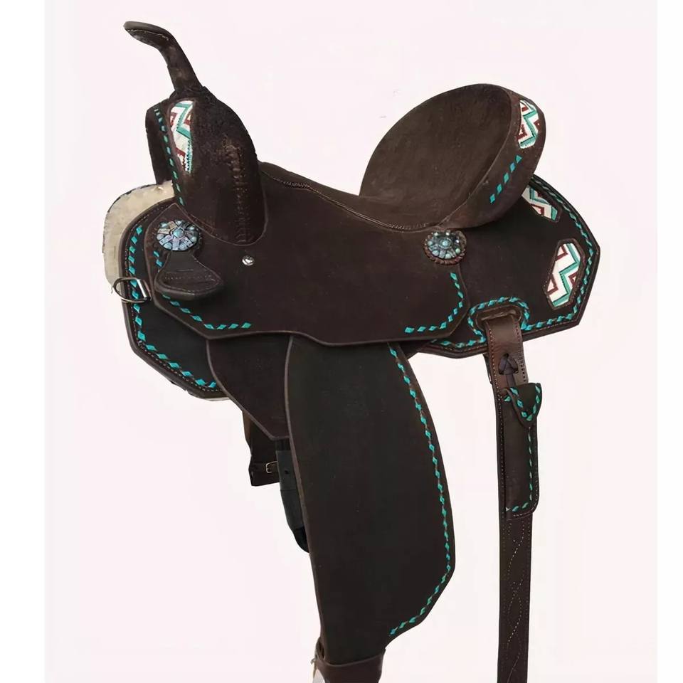 Western Leather Roughout Barrel Racing Saddle Ligero, seguro y listo para el rendimiento