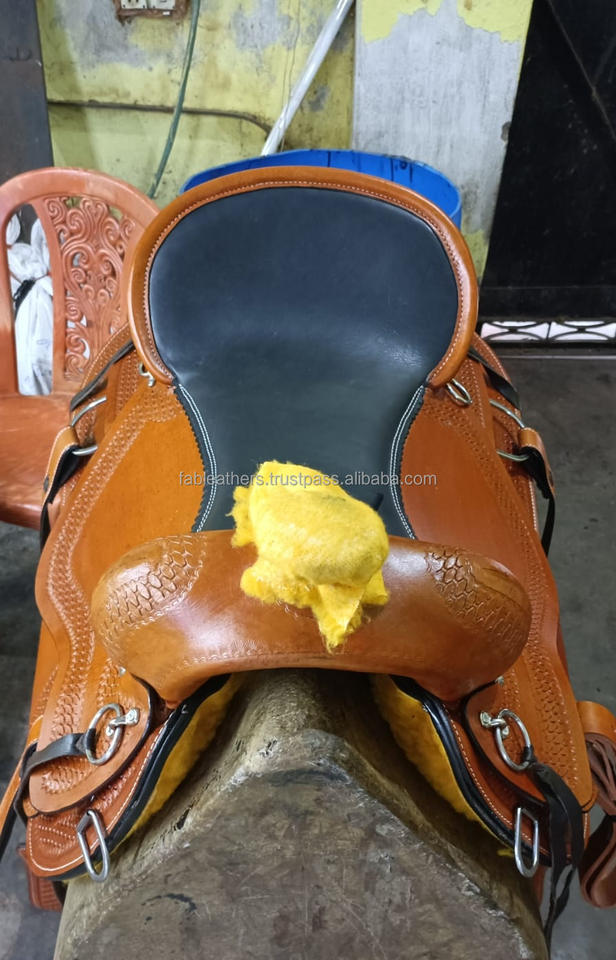 Nombre del producto:Silla de montar de cuero genuino hecha a mano para montar a caballo estilo Western Pleasure Trail