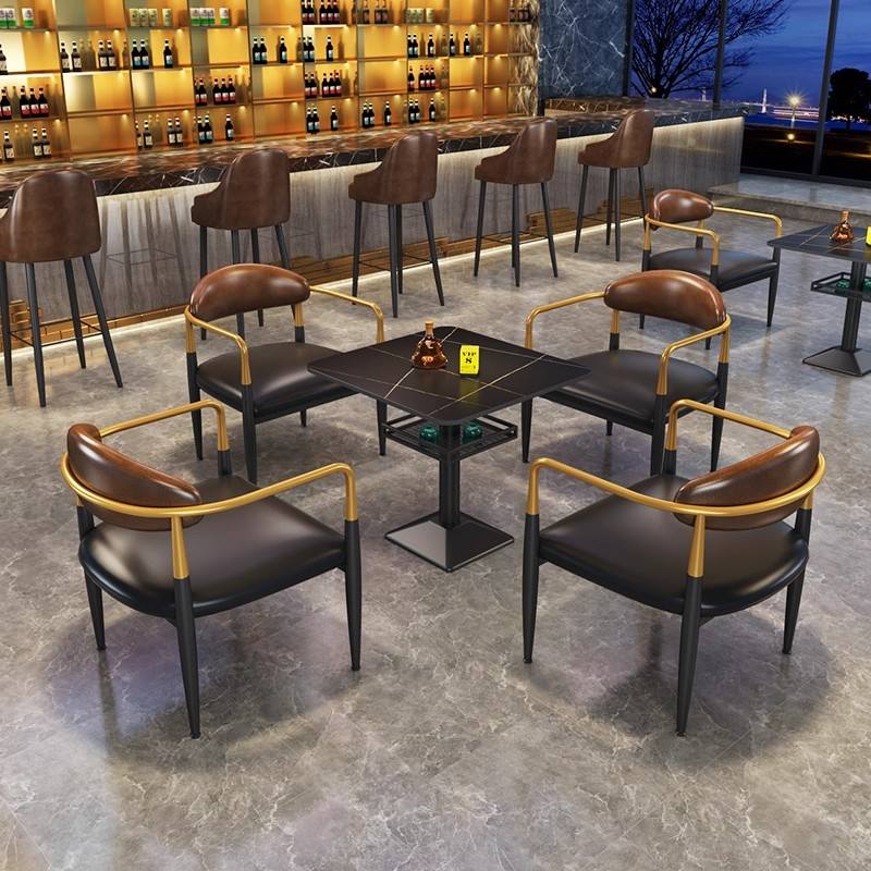 Juego de mesa y silla de restaurante occidental Bistro Cafe Card Seat Sofa & Bar Clear Music Dining Bar con barbacoa Material de hierro