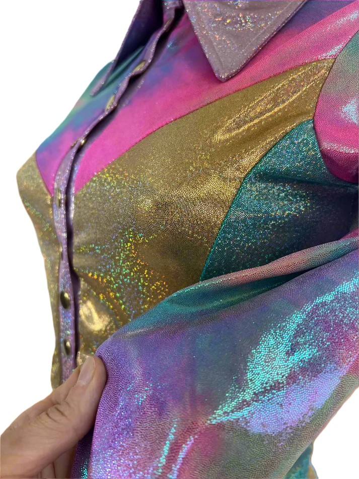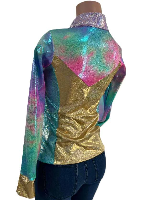 Camisa Western Rodeo Ecológica, Ligera, Transpirable, de Manga Larga, con Tela Brillante Elástica y Botones a Presión