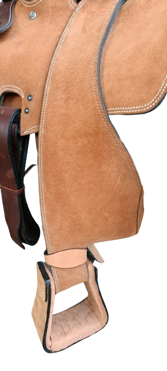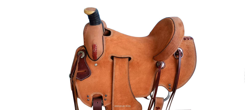 Western Roping Ranch Horse Saddle Smart Carbon Fiber Tree Plastic con estribos cubiertos de cuero Long Riding Leather Horse Saddle