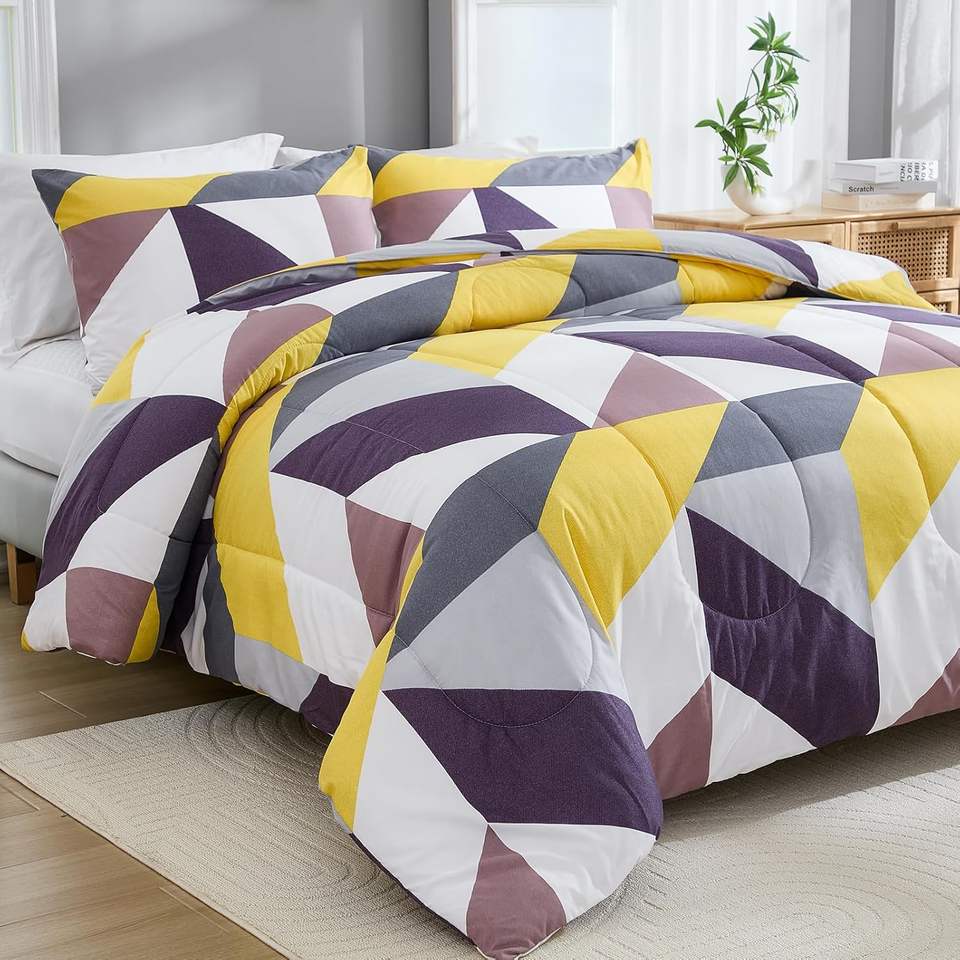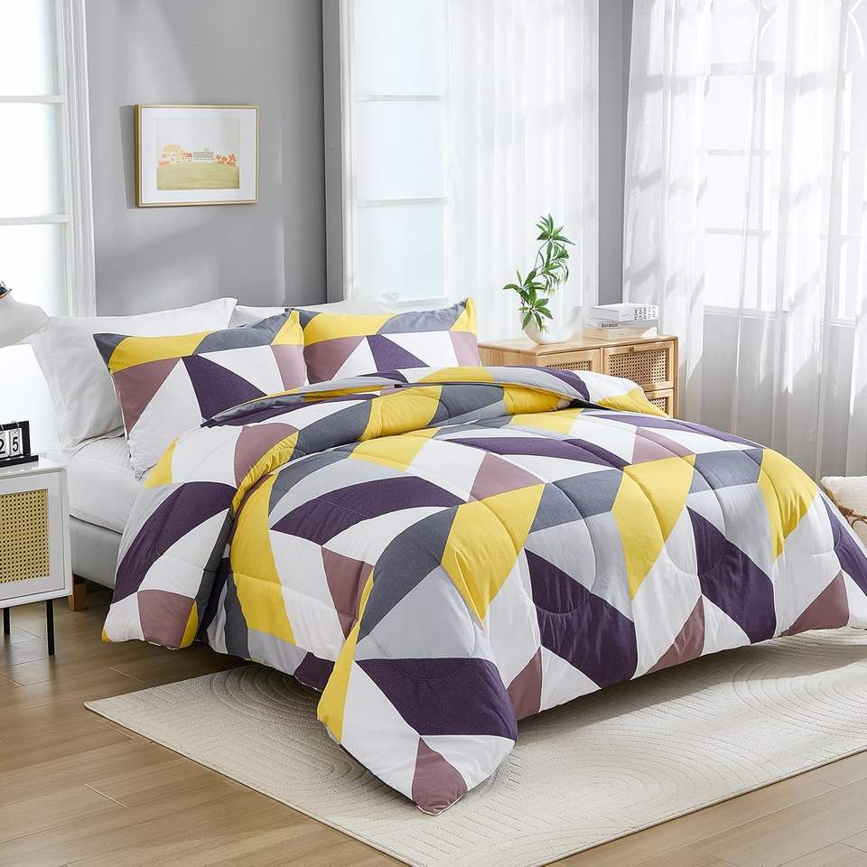 Juego de edredón gris turquesa geométrico de 3 piezas de estilo occidental para todas las estaciones
