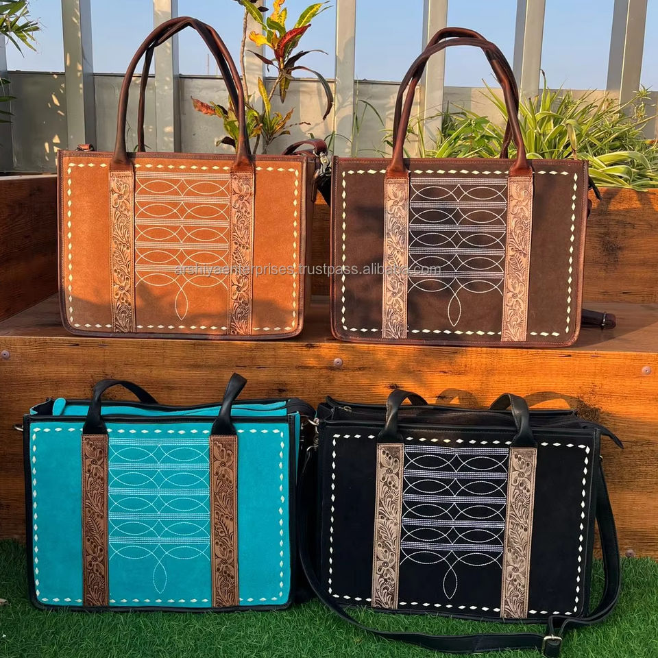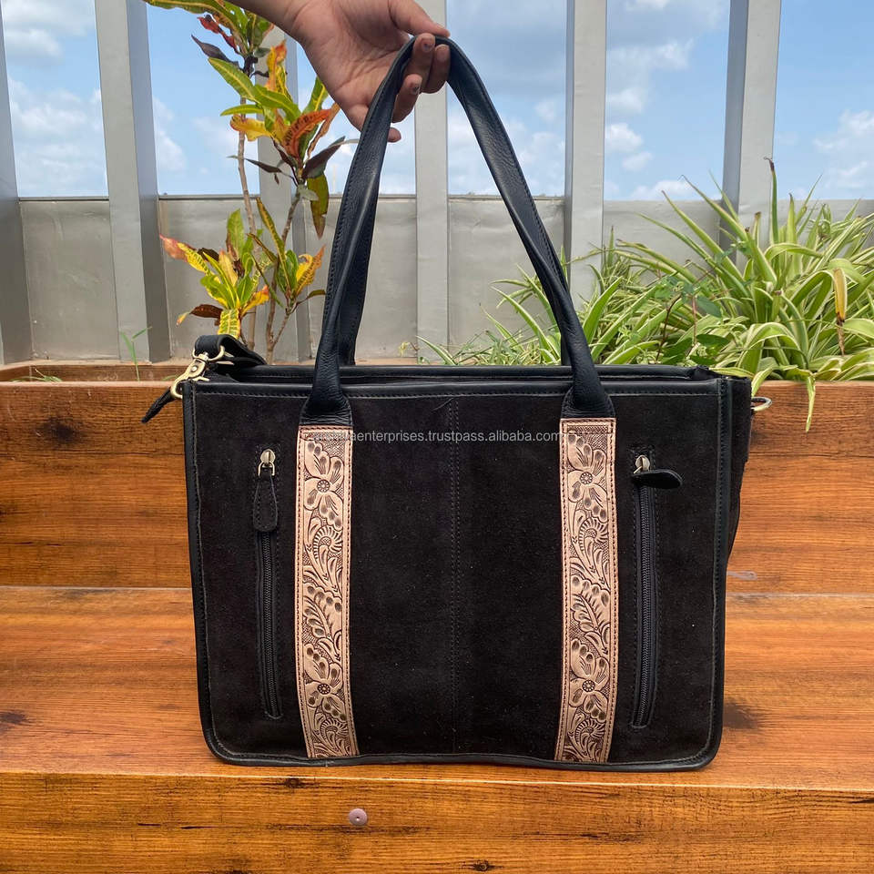 Nombre del producto:Bolso Tote de Cuero de Ante Tallado a Mano