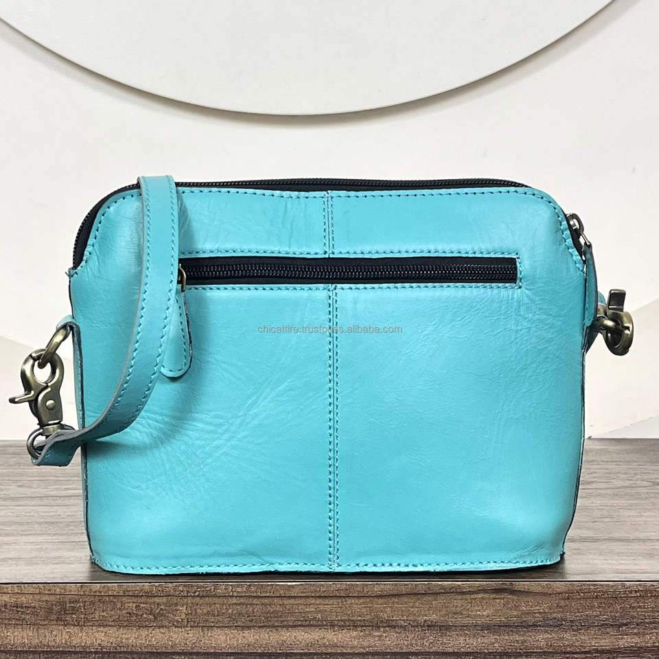 Bolsos de cuero turquesa con diseño floral, estilo occidental, hechos a mano, venta al por mayor, bolsos cruzados de diseño personalizado para mujer