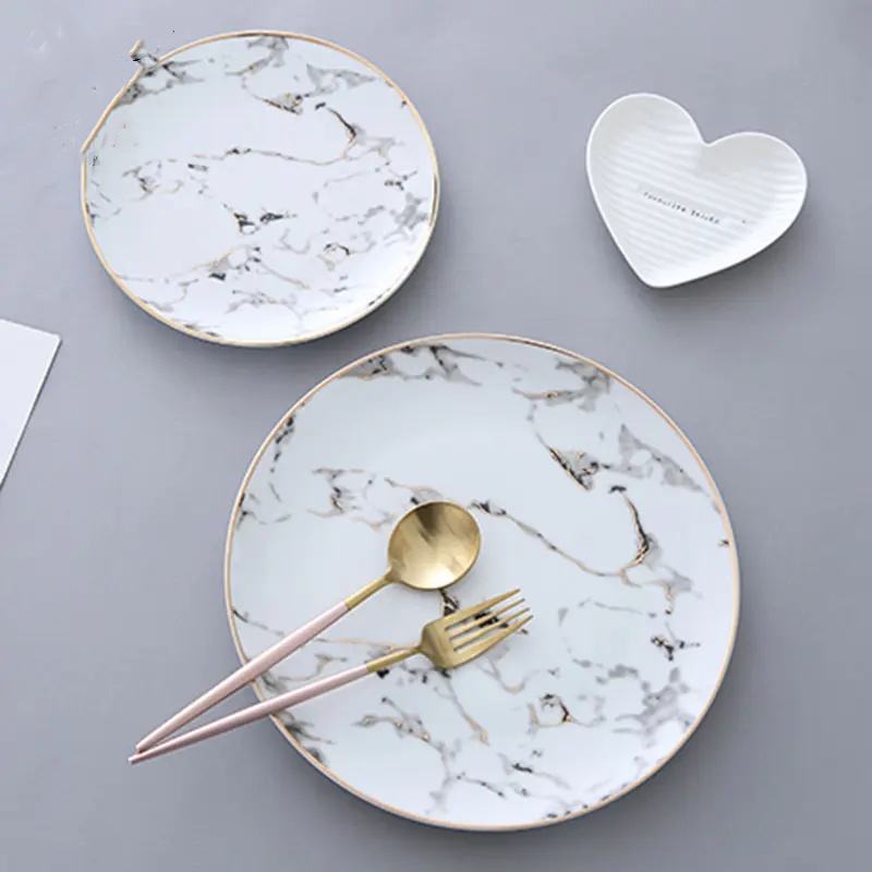 Juego de vajilla de porcelana blanca de diseño italiano de estilo occidental, platos de cena para restaurantes