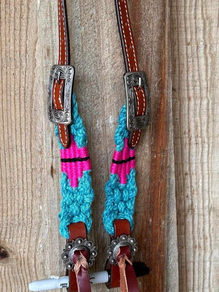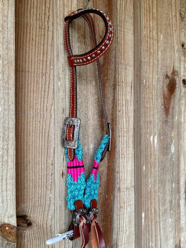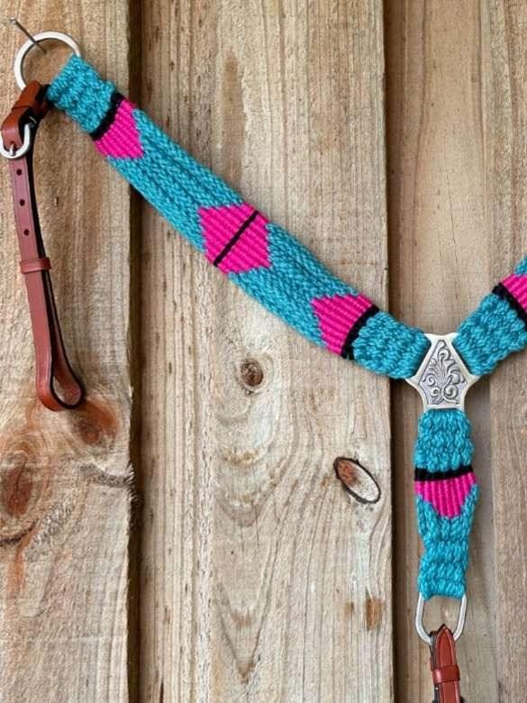 Conjunto de arreos Western - Brida de un solo oído de mohair y pechera a juego, accesorios de arreos para equitación y cabezada