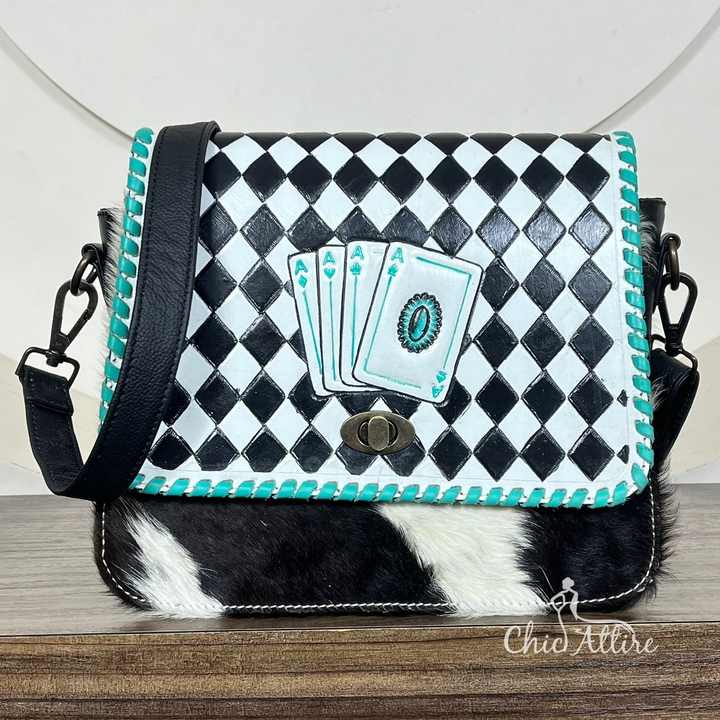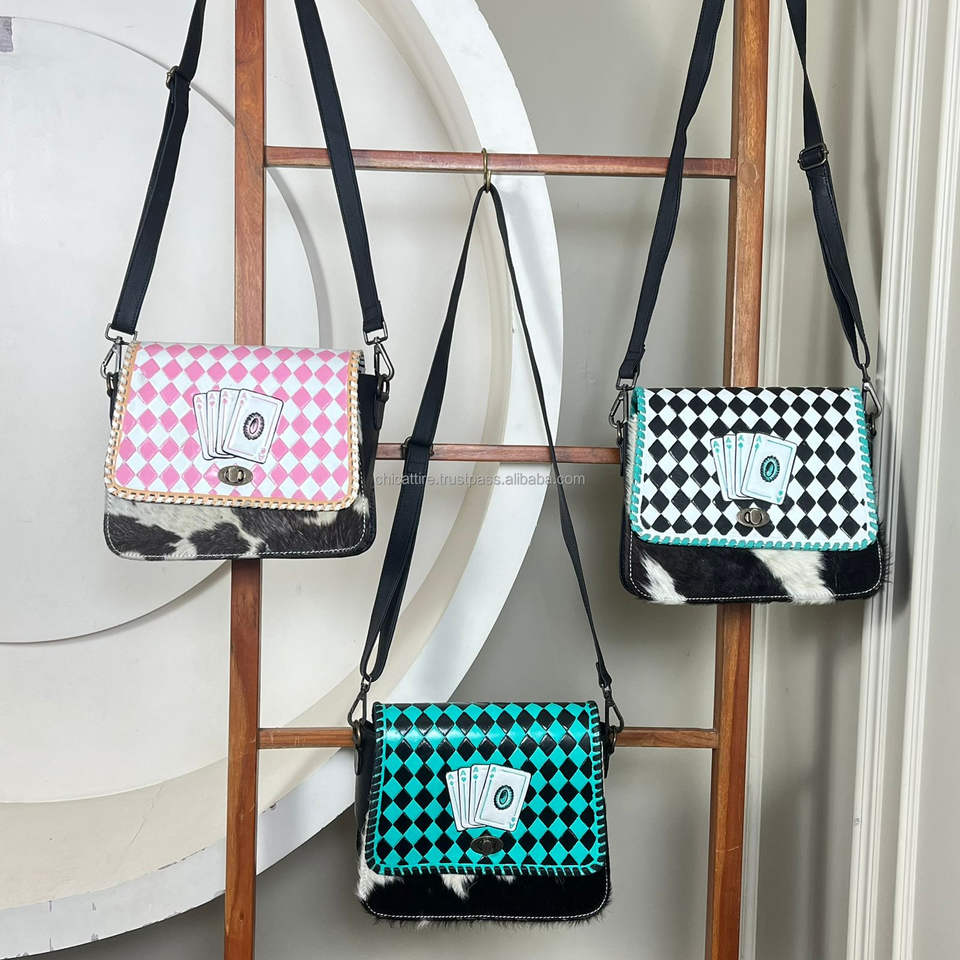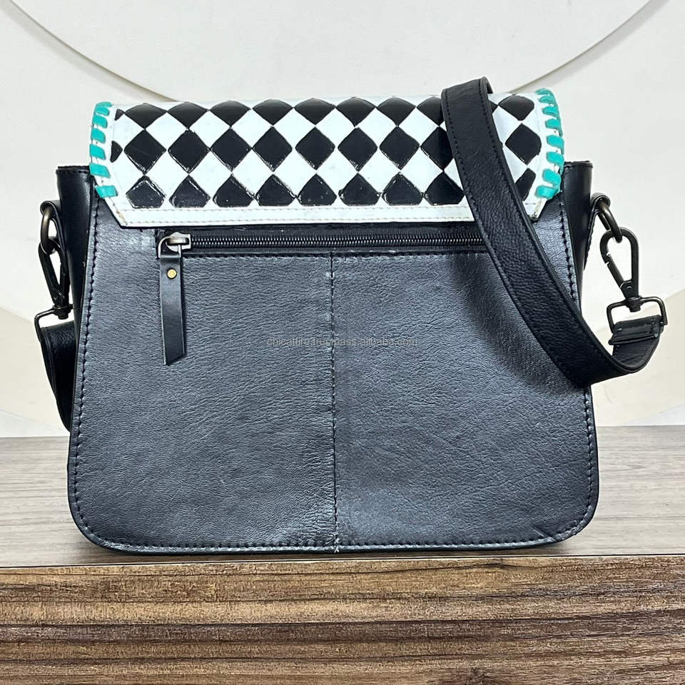 Nombre del producto:Bolso de mano a cuadros de cuero de vaca trabajado a mano