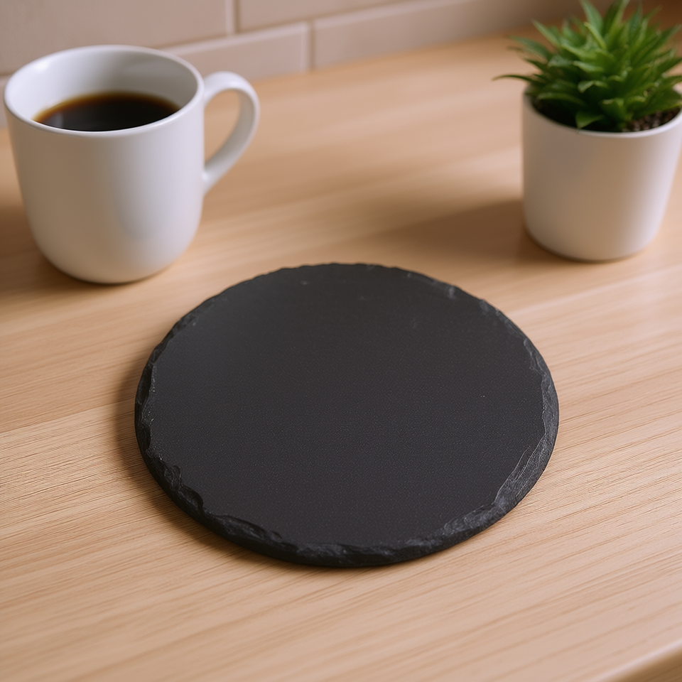 Juego de Posavasos Redondos Clásicos de Pizarra Natural Westmark, Duraderos, 8 Piezas en Caja, para Uso Promocional