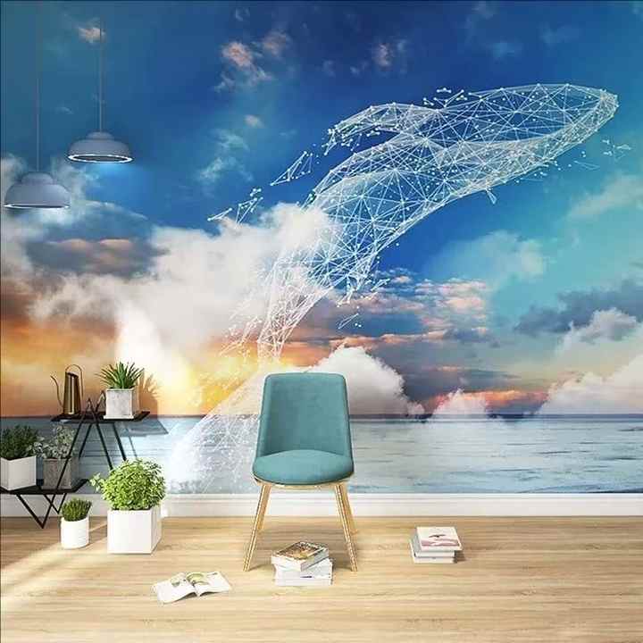 Mural 3D Dinámico de Ballenas, Papel Tapiz Autoadhesivo Premium Impermeable para Niños Activos, para Uso en Centros Comerciales y Hospitales