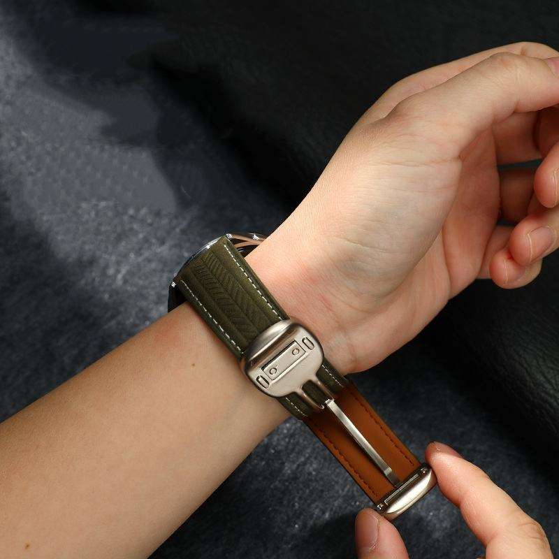 Correa de reloj de cuero de grano superior con patrón de grano de trigo para Apple Watch, correa deportiva de repuesto con diseño moderno y cierre magnético