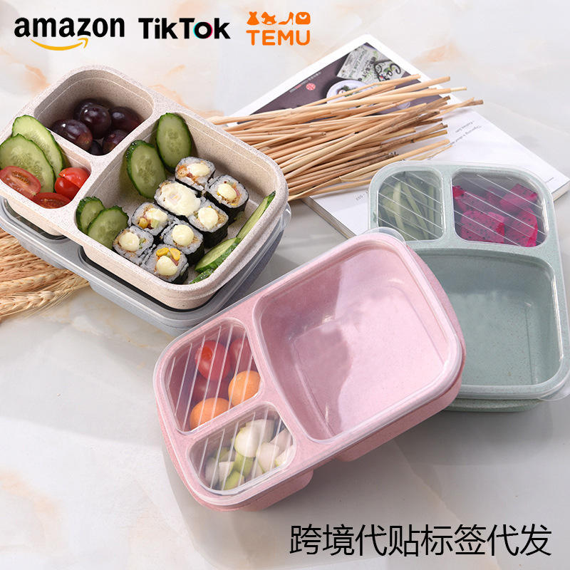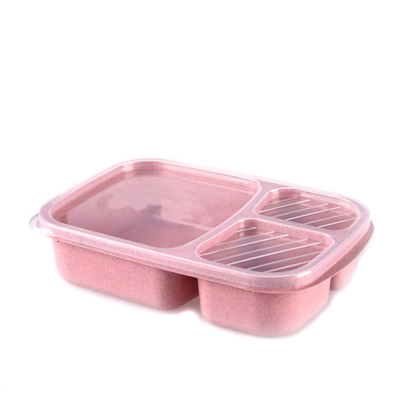 Lonchera rectangular de paja de trigo con múltiples compartimentos y color sólido para niños