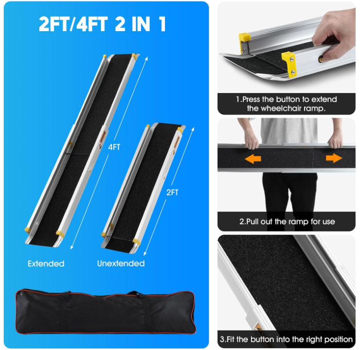 Rampas para sillas de ruedas Instalación ligera de aluminio Rampa de carga portátil de acero libre para ancianos