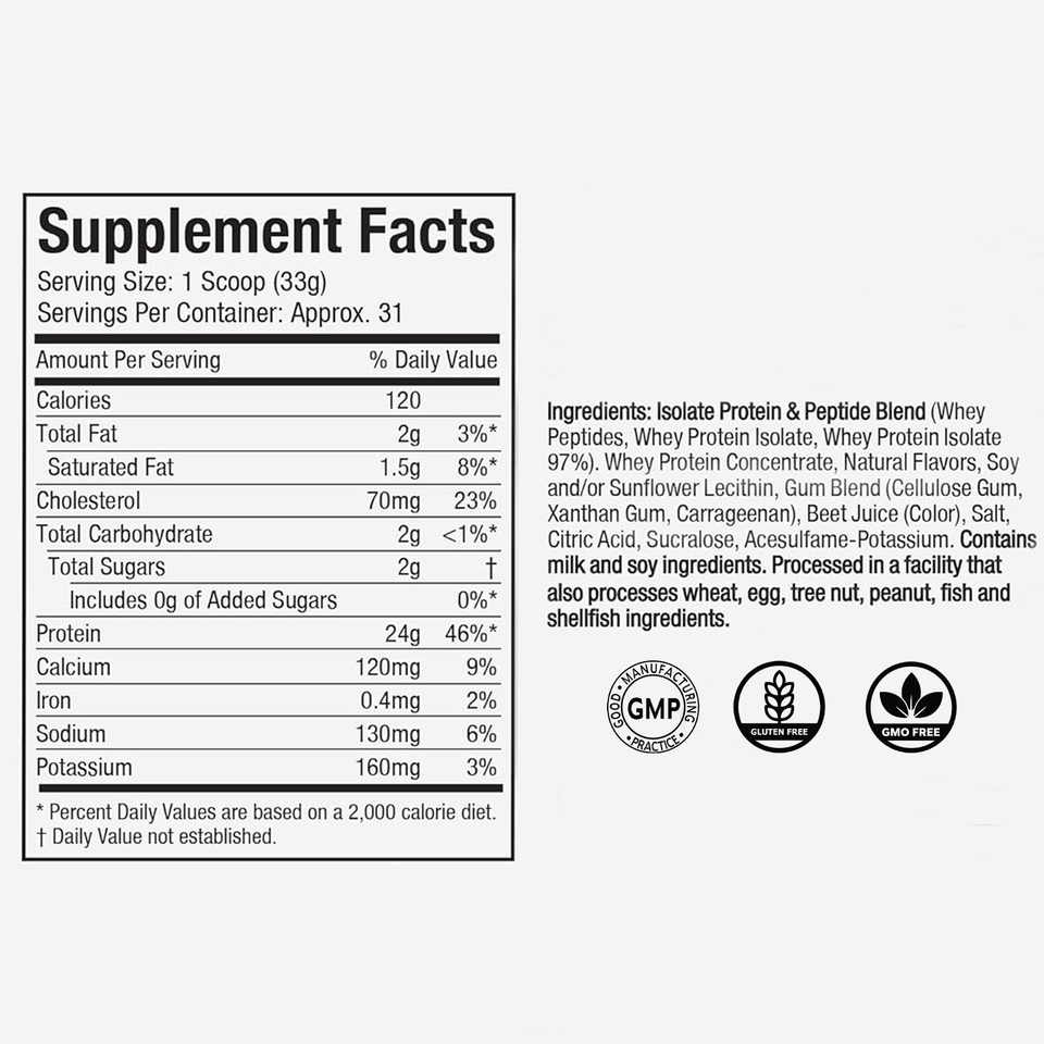 Ingrediente principal:Proteína 24g, Calcio 120 mg, Hierro 0,4 mg, Sodio 130 mg, Potasio 160 mg
