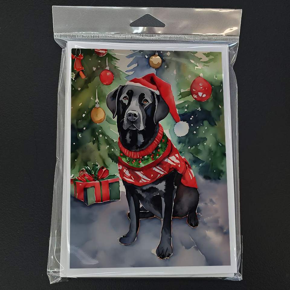 Whimsical A7 Tamaño 5x7 Black Labrador Retriever Tarjetas de felicitación de Navidad Paquete de 8 tarjetas de nota en blanco con sobres