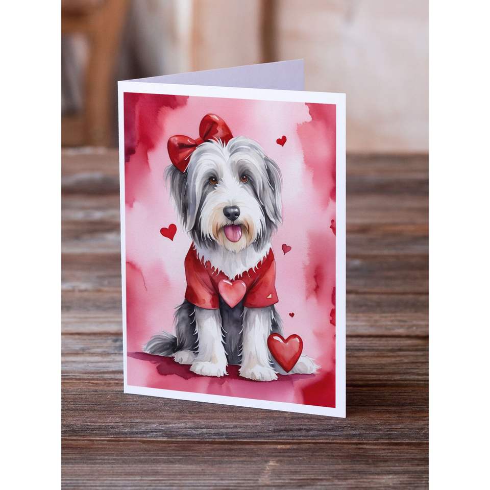 Whimsical A7 Tamaño 5x7 Tarjetas de notas en blanco Bearded Collie My Valentine Tarjetas de felicitación Paquete de 8 con sobres