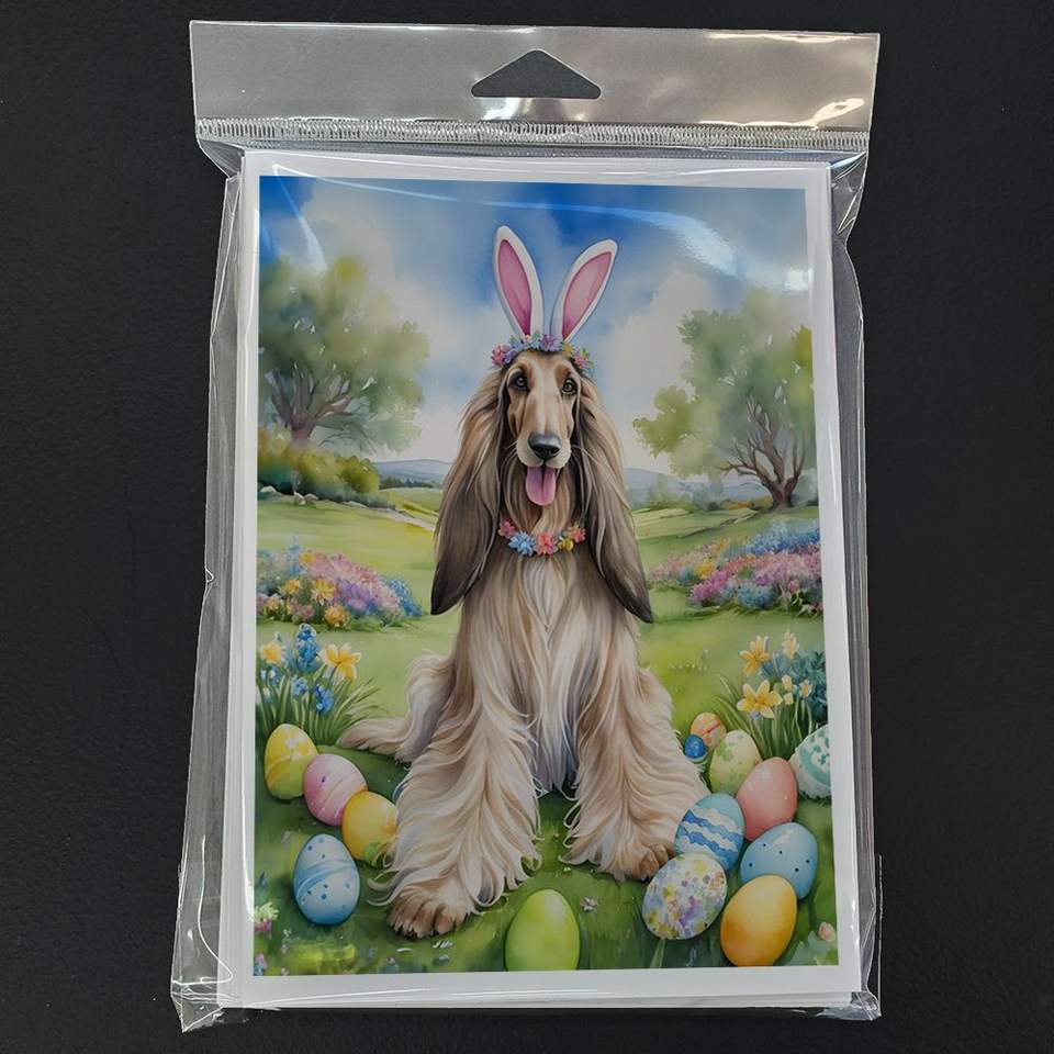 Whimsical A7 tamaño 5x7 notas en blanco Paquete de tarjetas de felicitación 8 con caza de huevos de Pascua de sabueso afgano para comunicaciones sociales personales