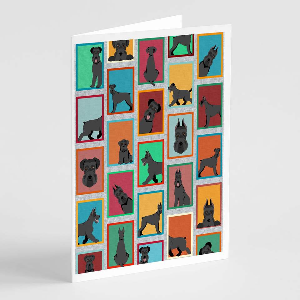 Whimsical A7 Tamaño 5x7 Tarjetas de notas en blanco Paquete de 8 Tarjetas de felicitación Schnauzer negras con sobres