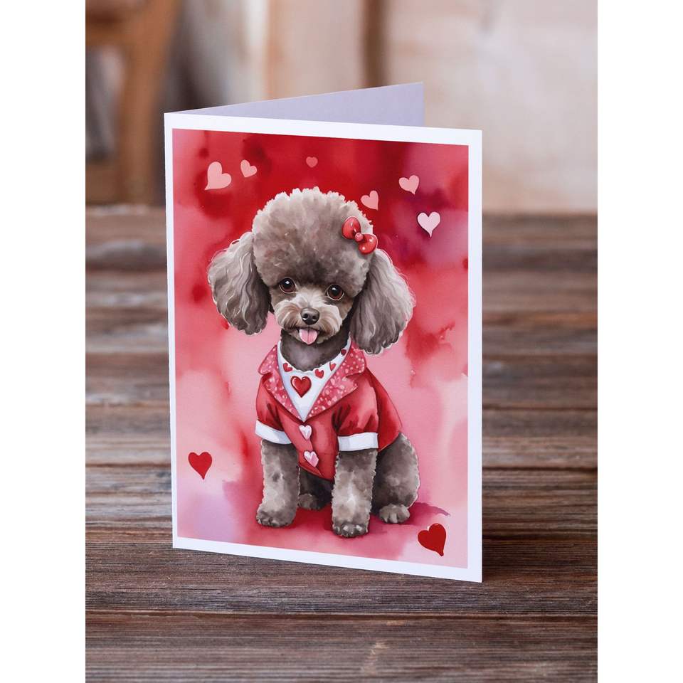 Whimsical A7 Tamaño 5x7 Tarjetas de notas en blanco Chocolate Poodle My Valentine Tarjeta de felicitación Paquete de 8 con sobres