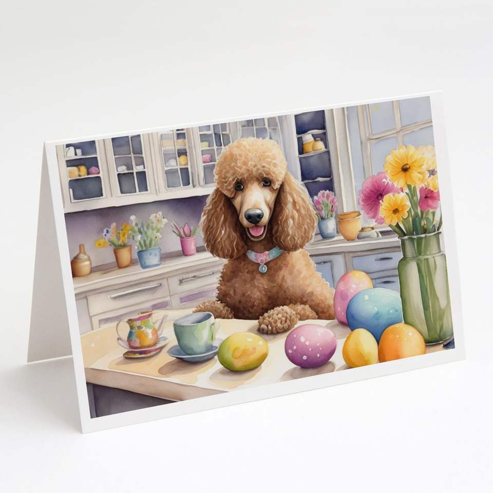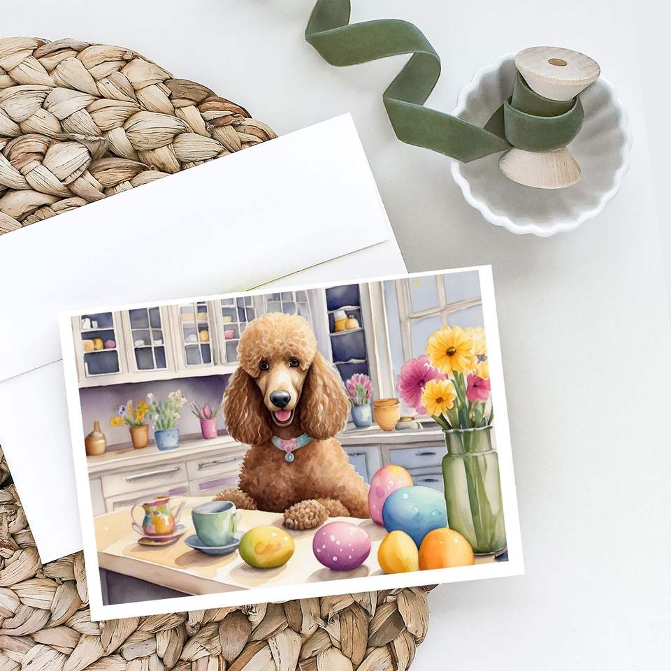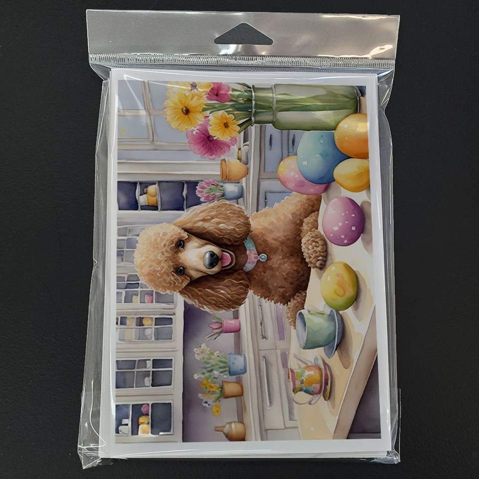 Whimsical A7 Tamaño 5x7 Tarjetas de notas en blanco Paquete de 8 Tarjetas de felicitación de caniche de Pascua con sobres para escritura de notas decorativas