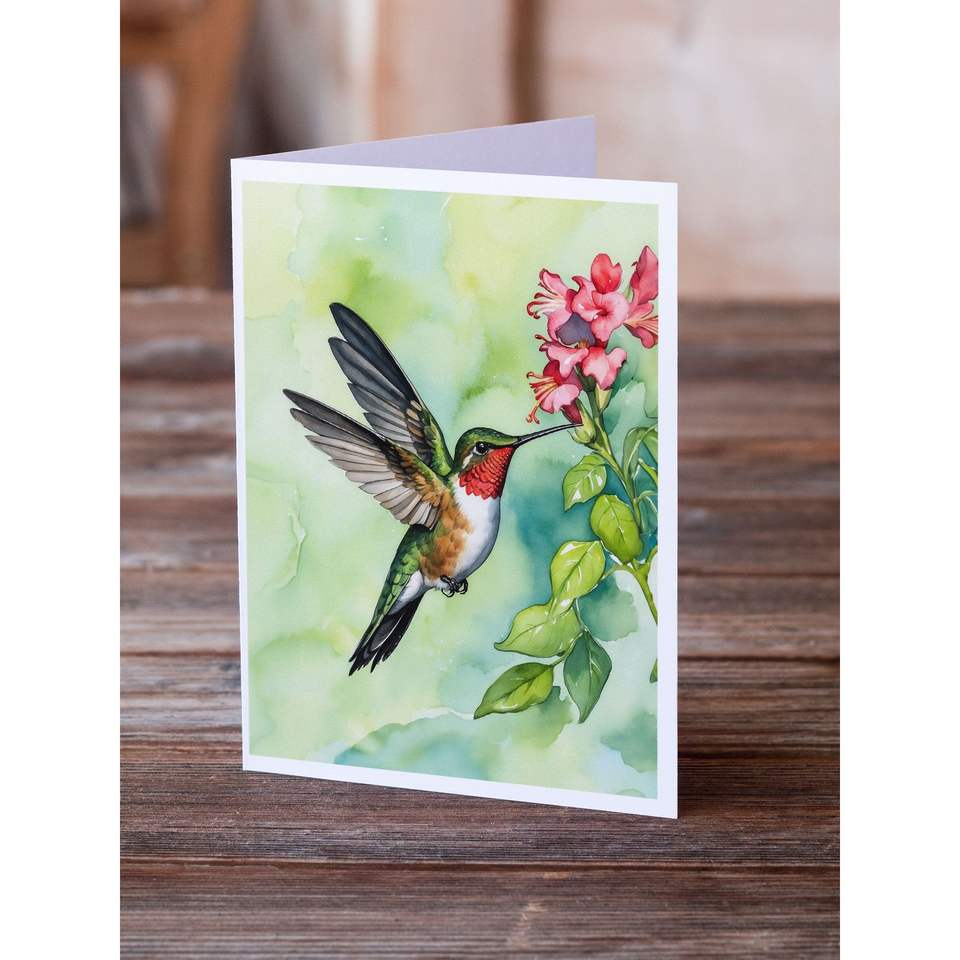 Whimsical A7 Tamaño 5x7 Tarjetas de notas en blanco Paquete de 8 tarjetas de felicitación de colibrí de garganta de rubí con sobres