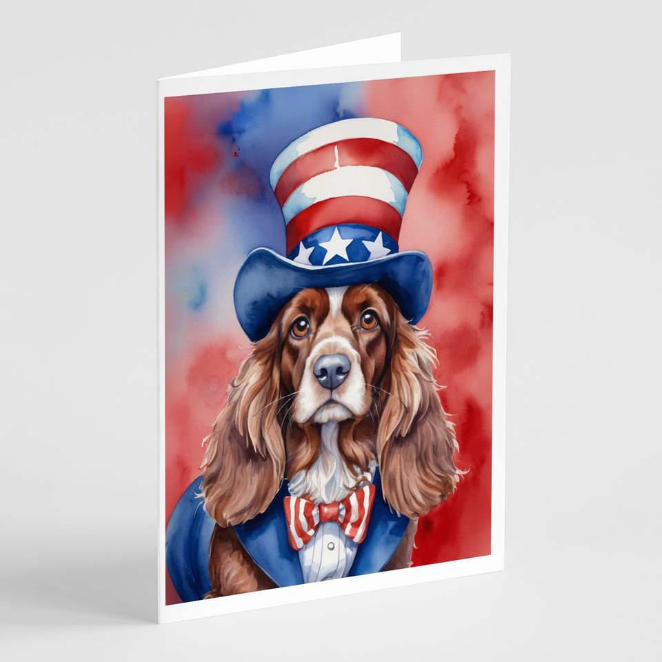 Whimsical A7 tamaño 5x7 tarjetas de nota en blanco paquete 8 tarjetas de felicitación patrióticas American Cocker Spaniel con sobres diseño caprichoso