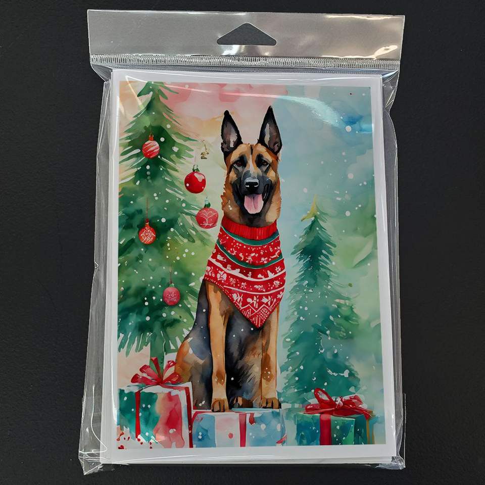 Whimsical A7 tamaño 5x7 Paquete de 8 tarjetas de felicitación de Navidad belgas Malinois tarjetas de notas en blanco con sobres