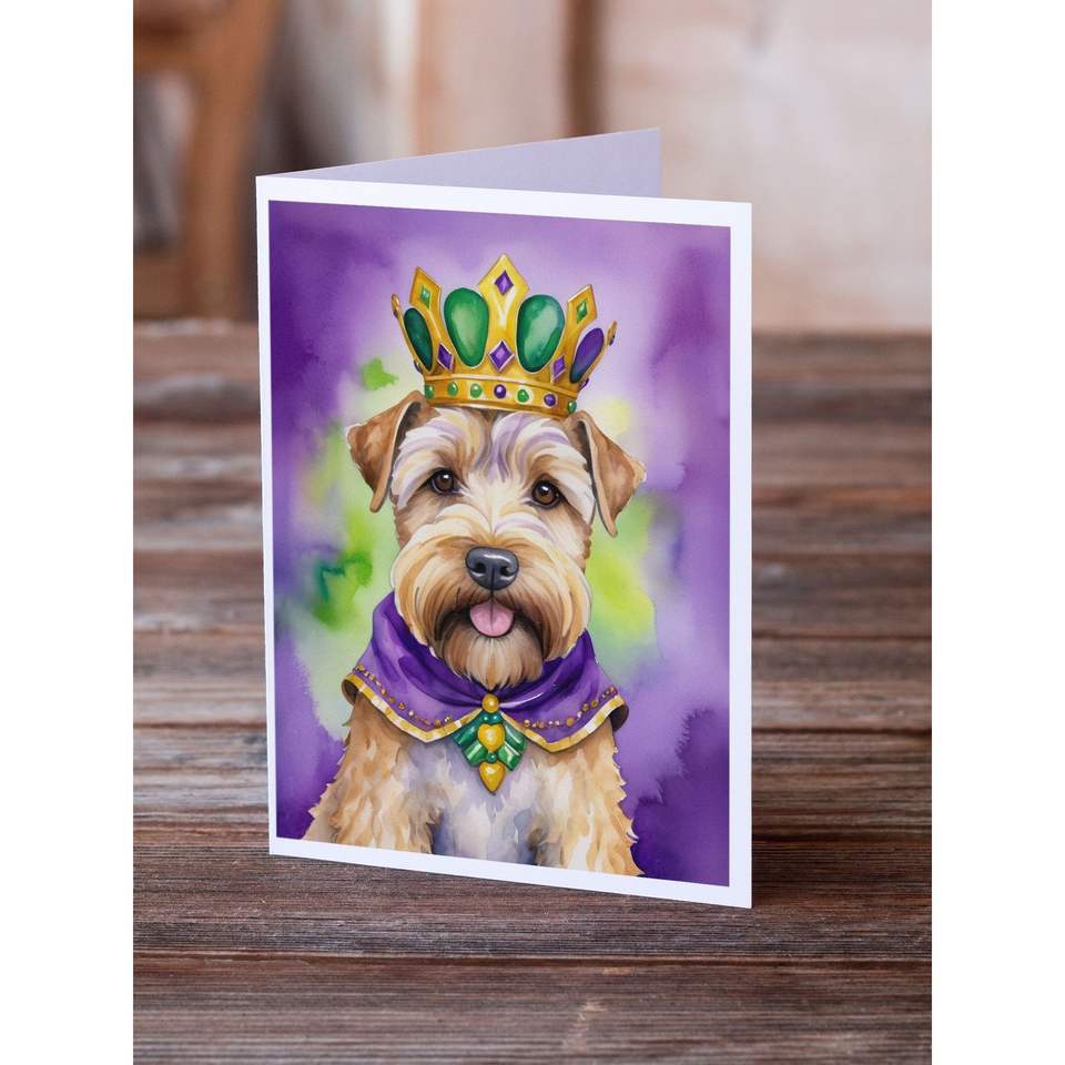 Whimsical A7 Tamaño 5x7 Wheaten Terrier King of Mardi Gras Tarjetas de notas en blanco Paquete 8 con sobres para saludos