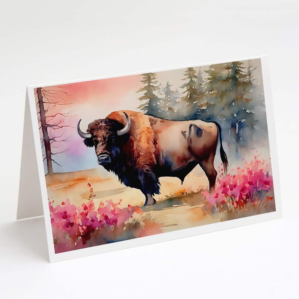 Whimsical A7 Tamaño 5x7 Madera Bison Tarjetas de notas en blanco Paquete de 8 con sobres Tarjetas de felicitación