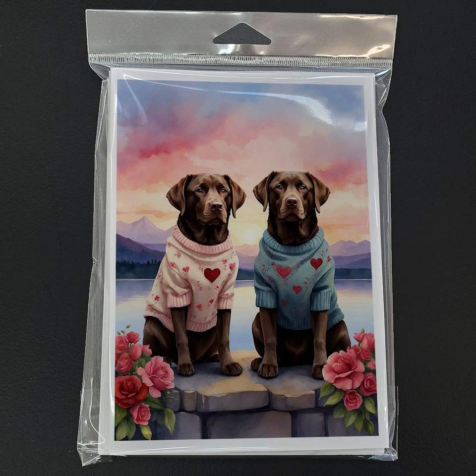 Whimsical Chocolate Labrador Retriever Dos corazones Paquete de 8 A7 Tamaño 5x7 Tarjetas de felicitación en blanco con sobres Tarjetas de notas