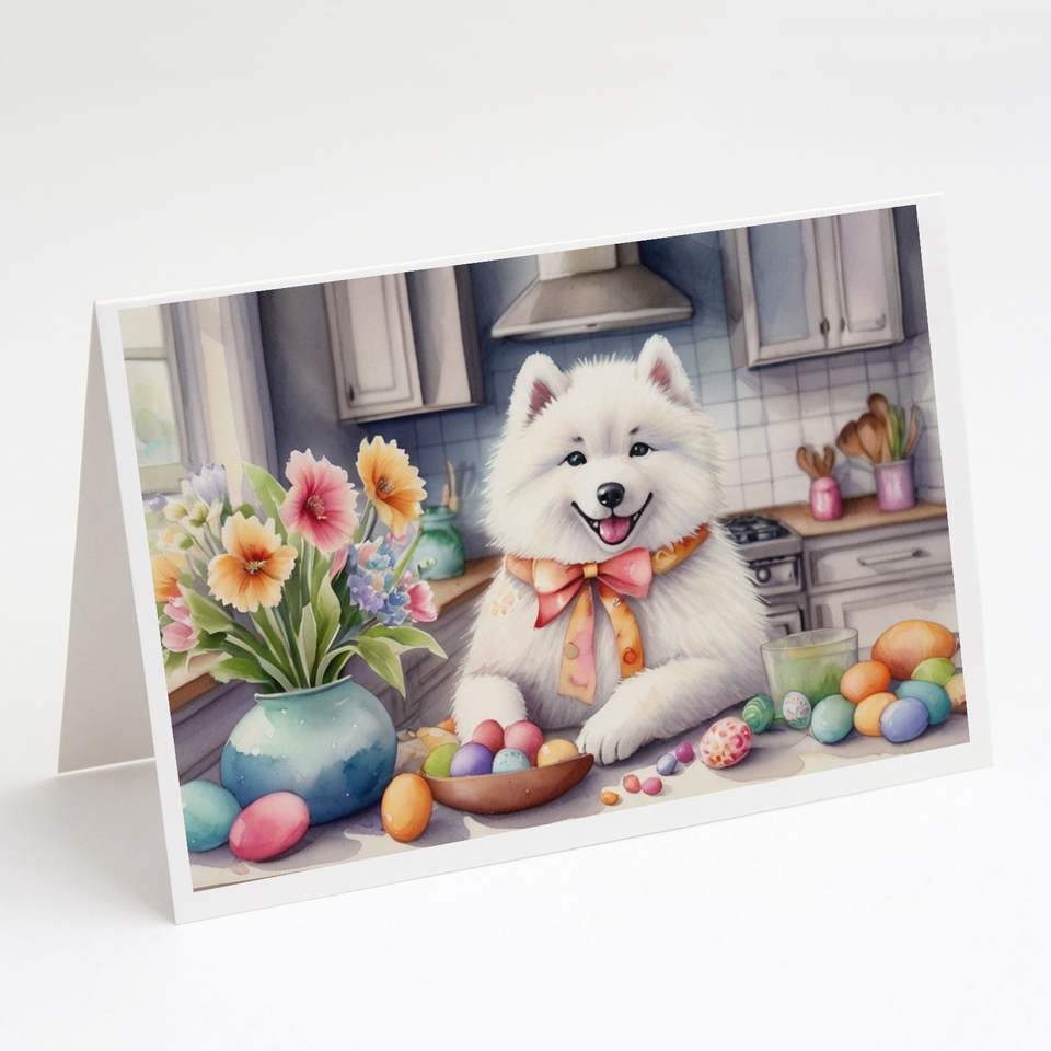 Whimsical Easter Samoyedo Tarjetas de felicitación Paquete de 8 A7 Tamaño 5x7 Tarjetas de notas en blanco con sobres para decoraciones