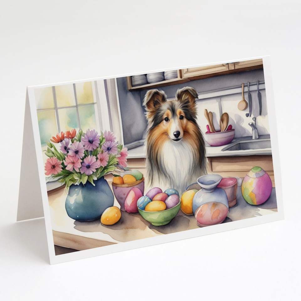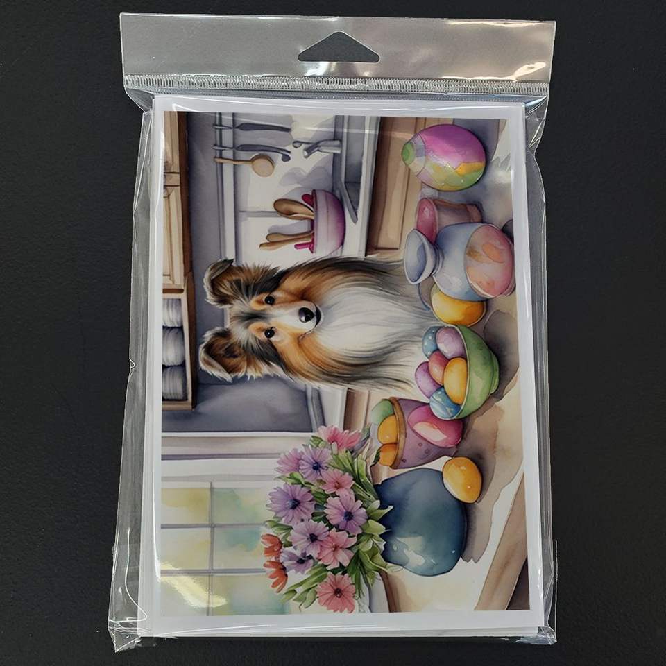 Whimsical Easter Sheltie Tarjetas de felicitación Pack 8 A7 Tamaño 5x7 Tarjetas de notas en blanco Sobres para decorar para vacaciones especiales