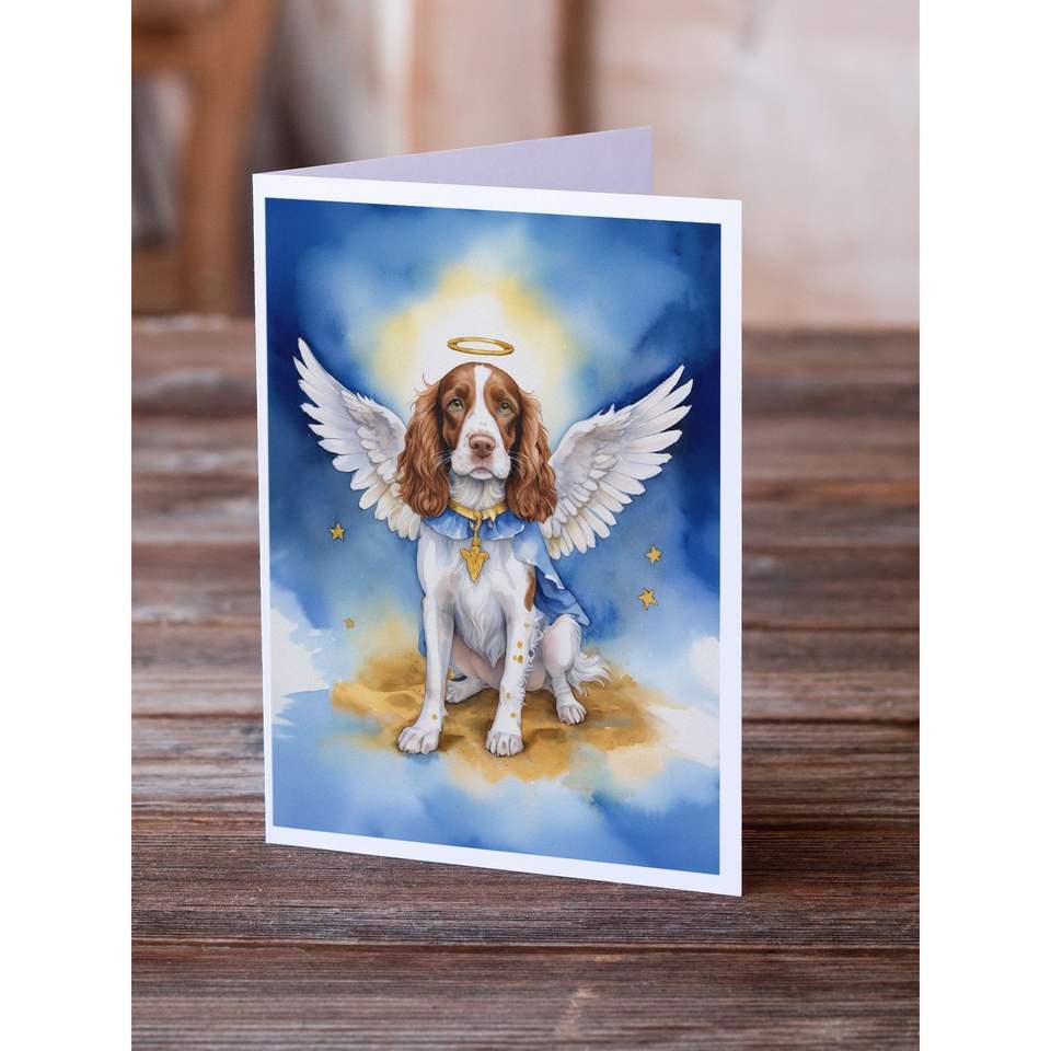 Whimsical Welsh Springer Spaniel Angel Tarjetas de felicitación Paquete de 8 tarjetas de nota A7 en blanco con sobres Tamaño 5x7