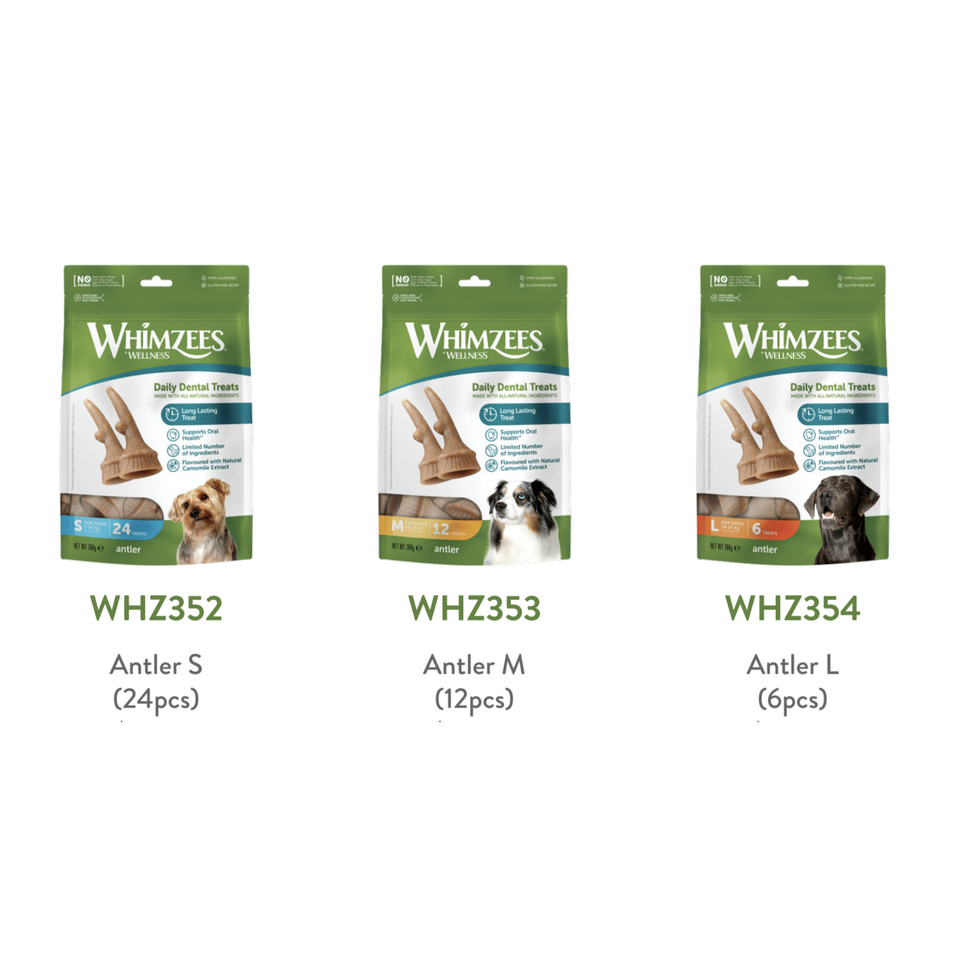 Whimzees - Bolsa de Golosinas Dentales Naturales para Perros - Antler L
