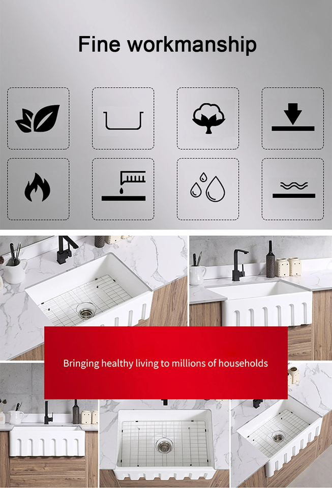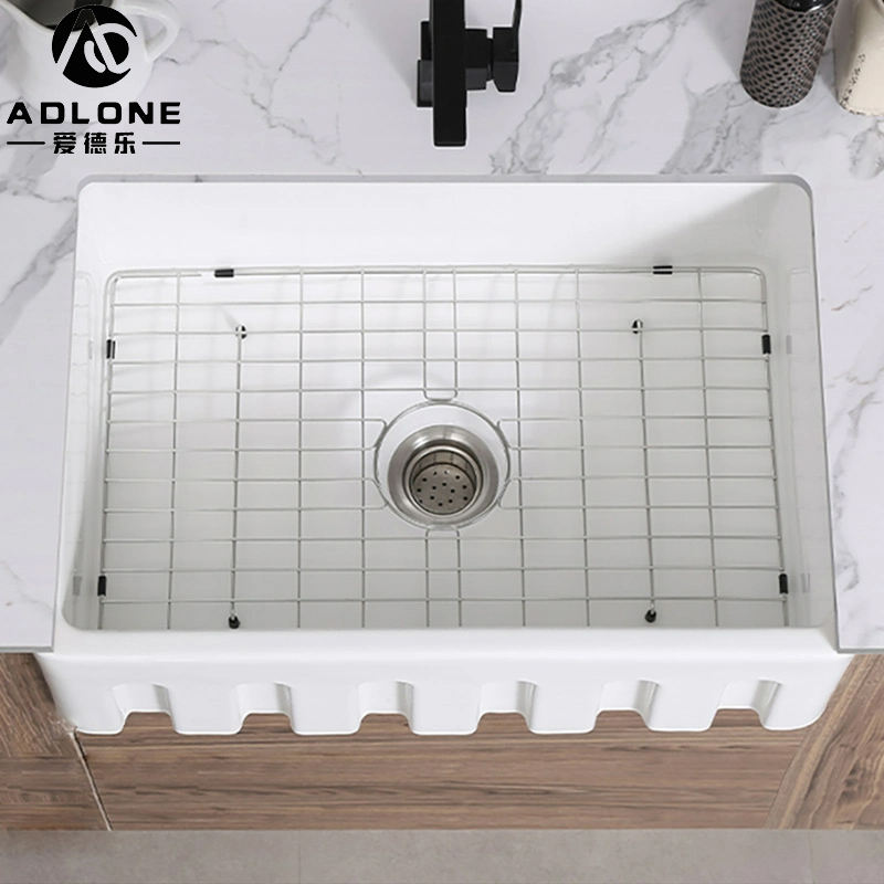 Fregadero de cocina de un solo lavabo de granja blanco de 33 pulgadas, cerámica de arcilla refractaria con Material de acero inoxidable, estilo de granja