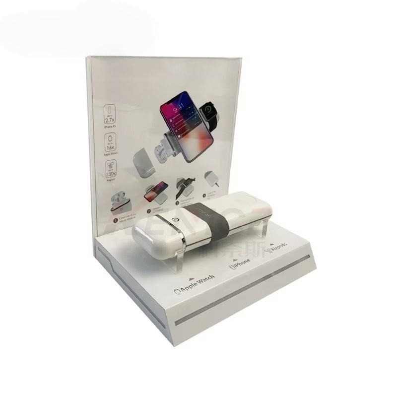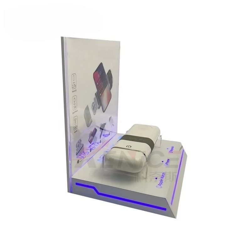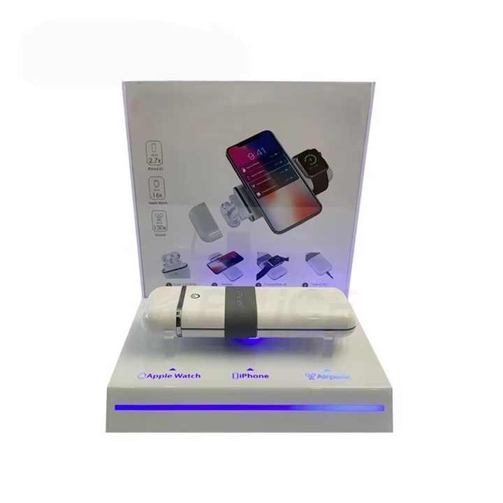 Exhibidor de Acrílico Blanco para Power Bank con Luz LED, Soporte en Forma de L de Perspex para Accesorios de Teléfono, Exhibidor para Tienda