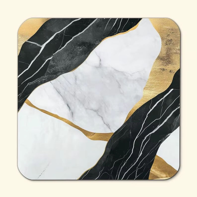 Juego de posavasos de mármol blanco y negro Posavasos de lujo con detalle dorado Juego de 4