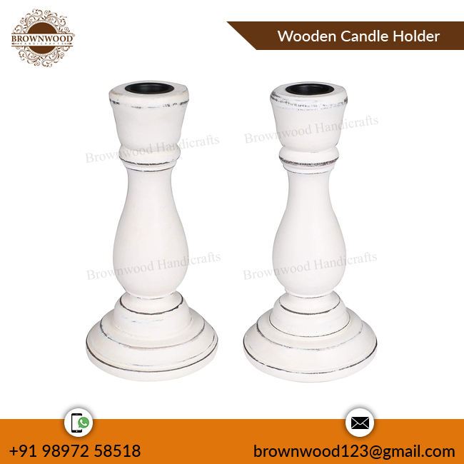 Candelabros hechos a mano de madera de mango macizo de Color antiguo blanco, Juego de 2, última llegada, superventas para decoración de bodas y cumpleaños