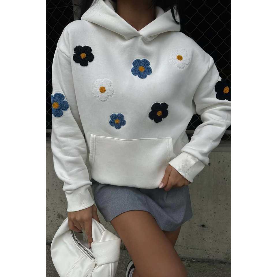 Sudadera Casual Blanca con Bordado de Flor Astrid para Niñas, Talla XS, con Capucha, Estampado Puff, Material Terry, para Invierno, Otoño y Verano