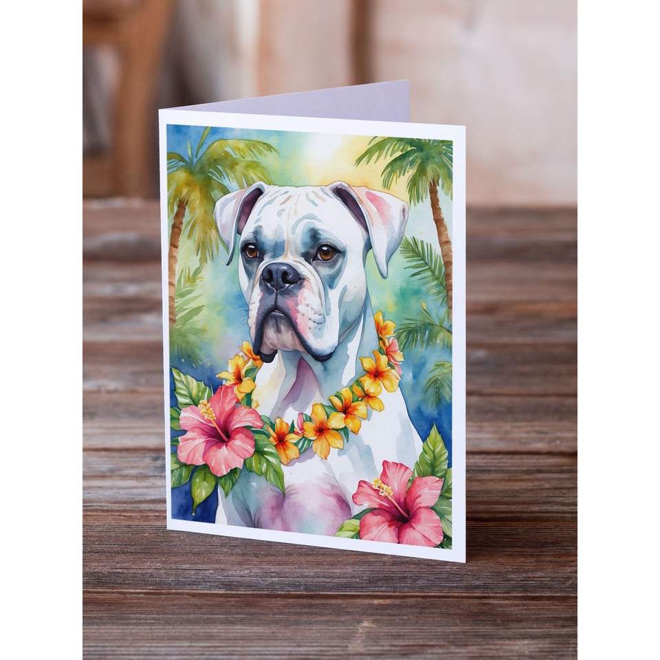 White Boxer Luau Tarjetas de felicitación Paquete de 8 Whimsical A7 Tamaño 5x7 Tarjetas de nota en blanco con sobres